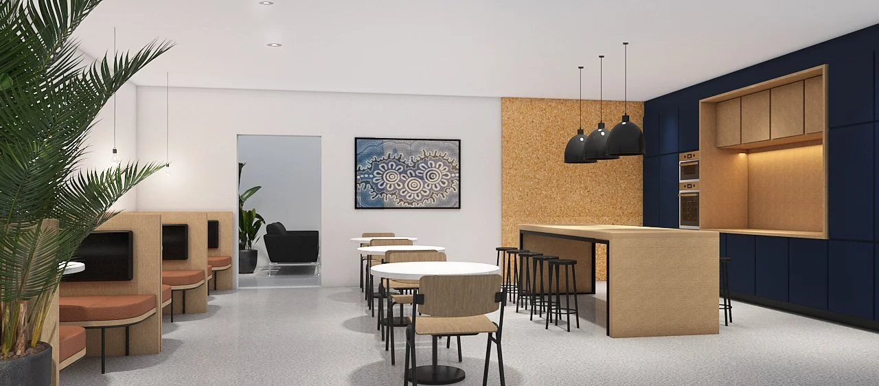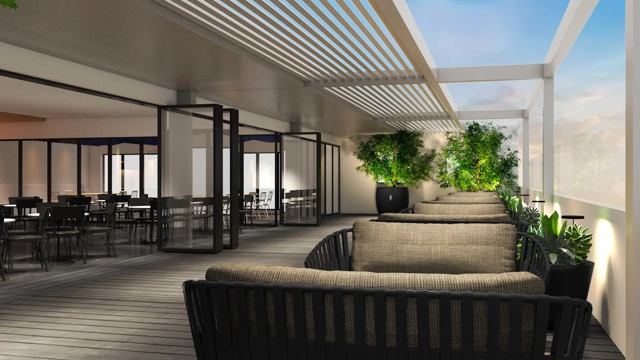 A significant renovation to the multi-storey office building that serves as Civmec’s head office, this project reimagines key areas to create a cohesive, contemporary workplace. The design focuses on enhancing arrival and interaction spaces, with a transformed reception, boardroom, and recruitment suite that reflect Civmec’s identity through refined materiality and considered detailing. All toilet and pantry facilities are also fully refurbished, delivering a consistent design language throughout the building. A new function space extends onto a rooftop terrace, offering a dynamic setting for events and informal gatherings, with sweeping views that connect the workplace to its broader industrial context. Complementary landscaped areas soften the building’s edges, introducing greenery and outdoor pockets that provide moments of pause and opportunities for connection. Together, these upgrades revitalise the workplace, supporting both operational needs and the wellbeing of employees, while reinforcing Civmec’s identity as an innovative and forward-thinking organisation.