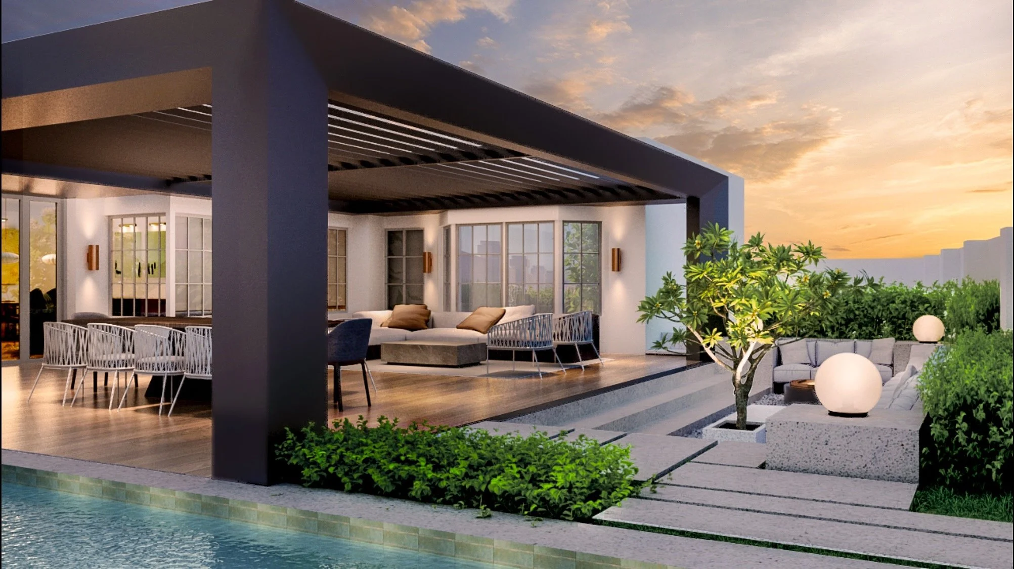 A busy family seeking a vibrant transformation for their home. The brief was to define purposeful spaces - both private and for entertaining. Our design simplified structural elements and reconfigured the layout to include an office, home gym, and a dressing room within the master suite. We created a sophisticated living area, unifying the family and dining rooms with a striking brass feature wall and built-in fireplace. The terrace is sheltered by an operable louvred roof, allowing for year-round use.
